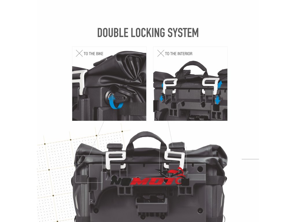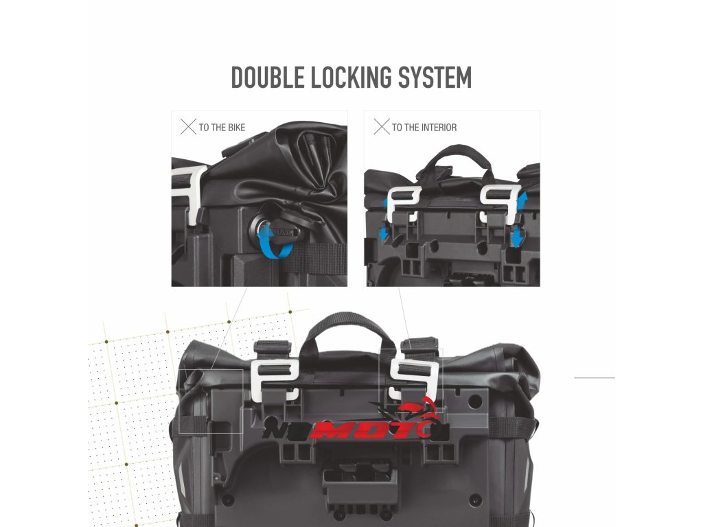 | Double security system: | Allows you to lock the bag on the 4P and 3P System fixings and prevent, at the same time, access to its interior. |
