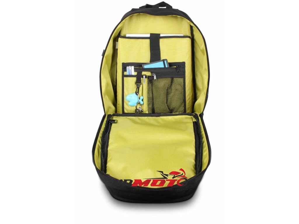Batoh SL86 je pro každodenní využití či pro víkendové výlety, při kterých helmu snadno upevníte na batoh. Vevnitř batohu naleznete polstrovanou kapsu pro Váš notebook a spoustu dalších kapes, do kterých se přehledně roztřídíte všechny věci. Má také dvě vnitřní kapsy a háček pro umístění klíčů.