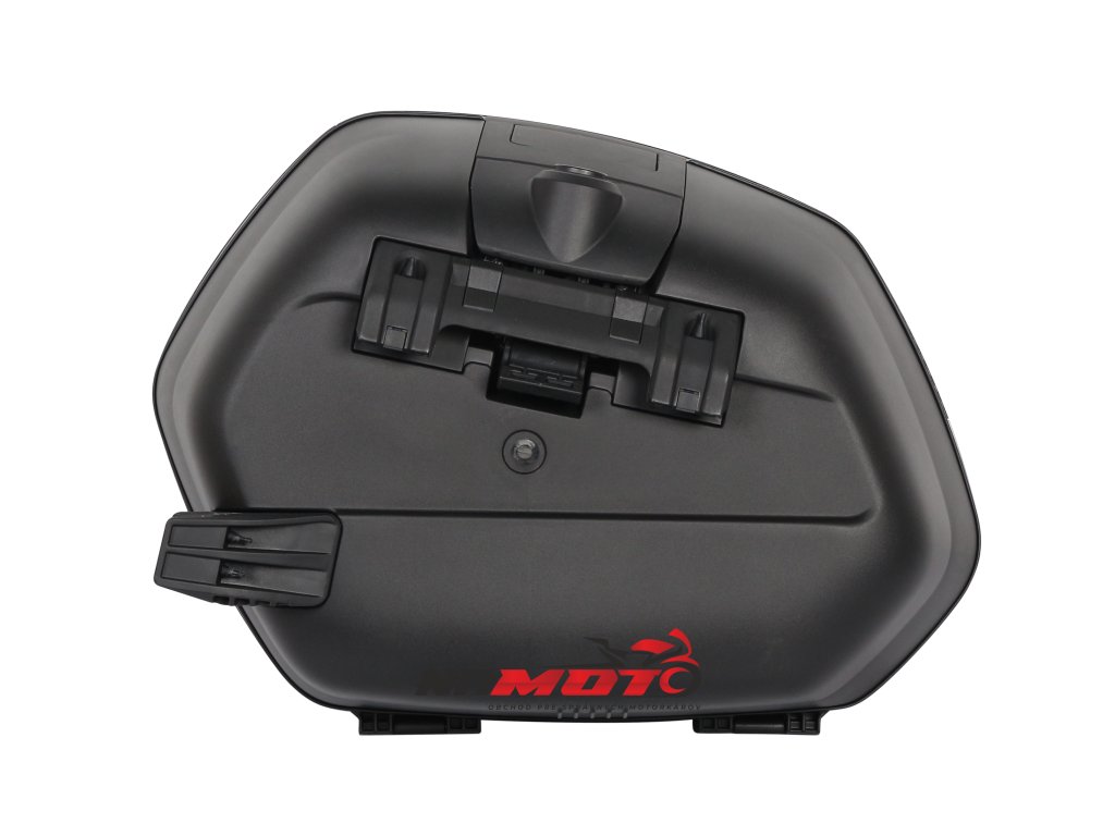 - Zámek, který zároveň zamyká víko kufru i kufr k motorce. Kufr má také madlo pro snadné přenášení