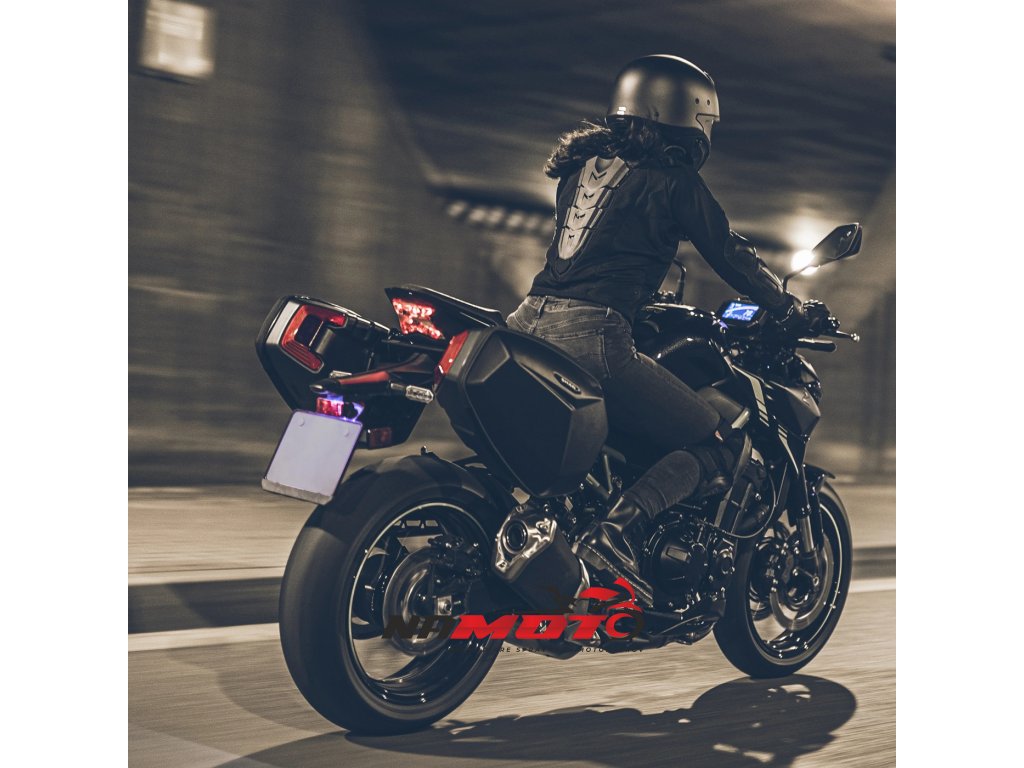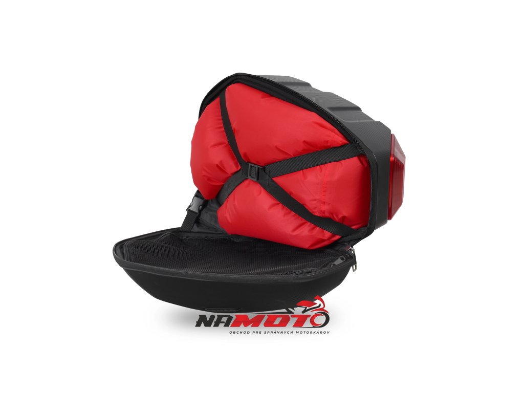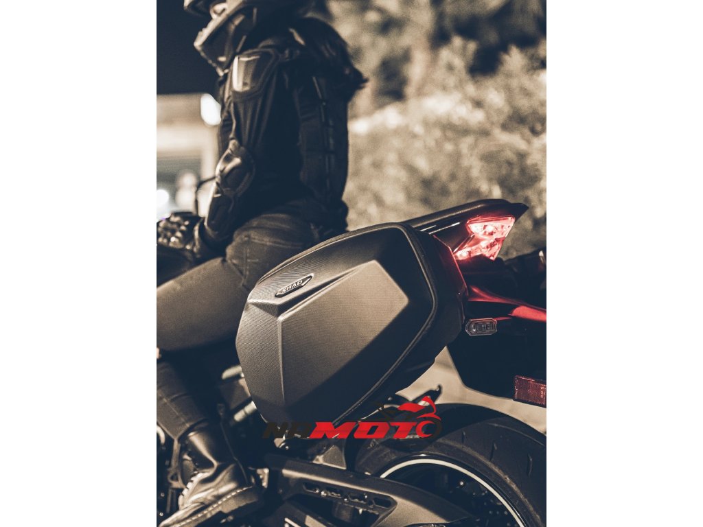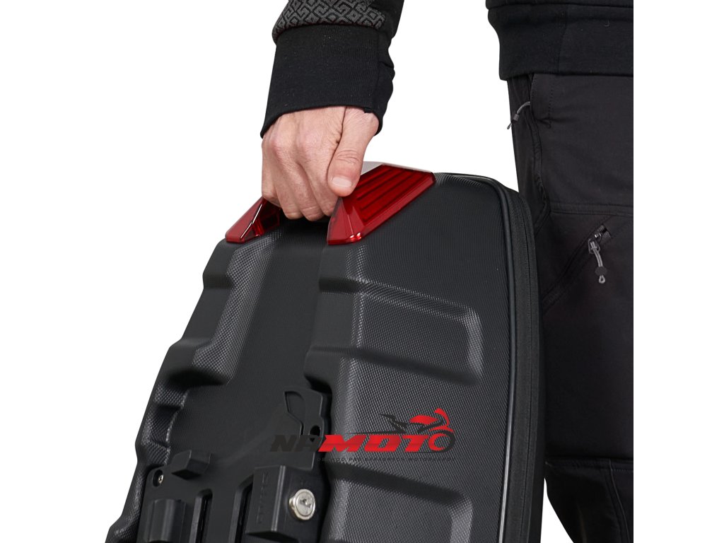 Brašny skvěle vypadají na motocyklech kategorie naked. Červený segment v zadní části kufru slouží nejen jako bezpečnostní a designový prvek, ale také jako madlo pro snadnou demontáž a manipulaci s brašnou.