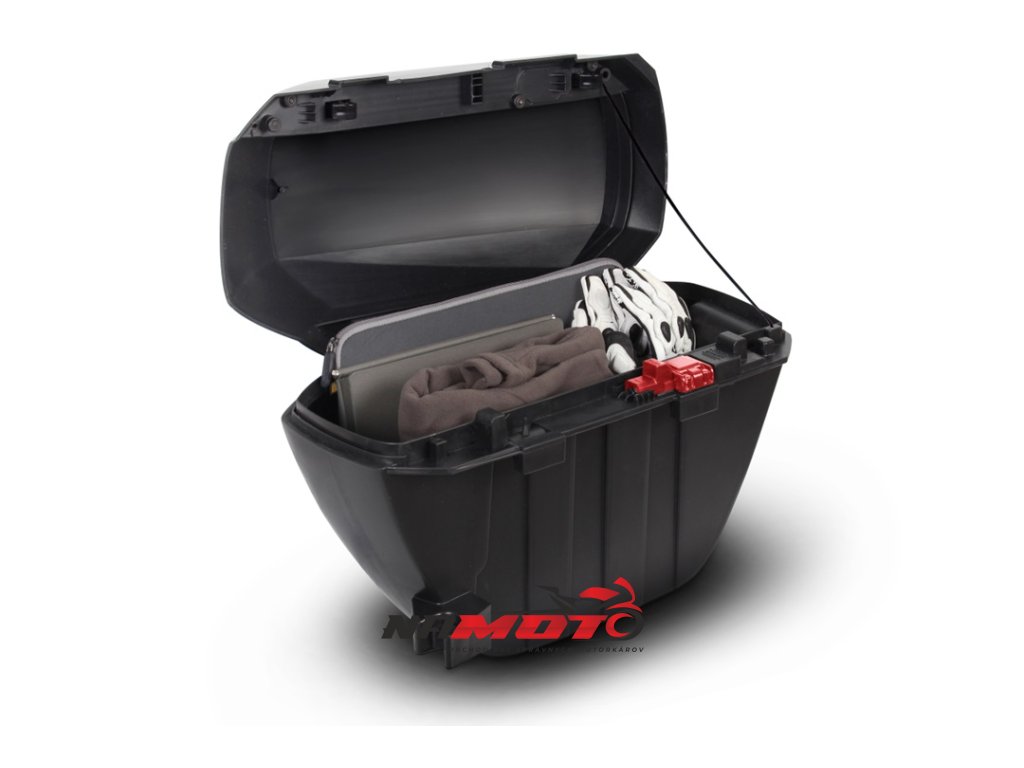 - Jedno otočením klíče má funkci dvojitého zamykání - uzamkne víko kufru a zároveň jej uzamkne k motocyklu. Balení obsahuje 2 klíče a přídavný cylindrický zámek, který můžete použít pro váš TOPCASE a díky tomu můžete jedním klíčem otvírat všechny tři kufry (platí pro TOPCASE SH26-SH47).