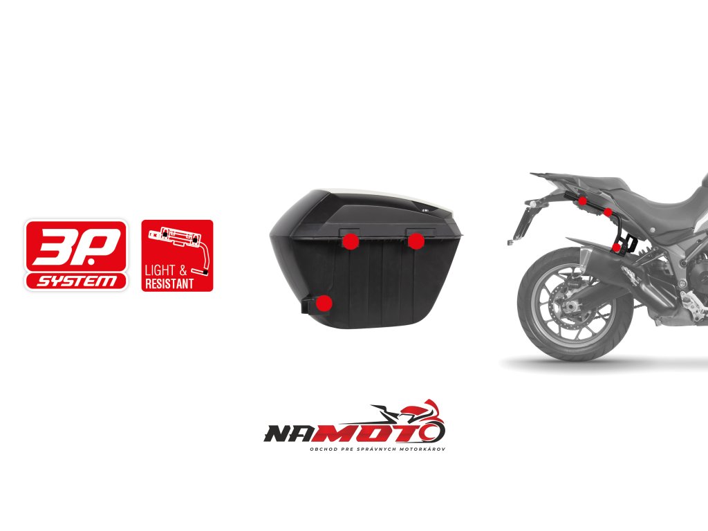 Boční kufry SH23 vynikají elegancí, lehkostí a funkčností. Jsou vysoce aerodynamické, odolné a vodotěsné. Funkce horního otevírání umožňuje jezdci přístup do vnitřku kufru, aniž by musel slézt z motocyklu.