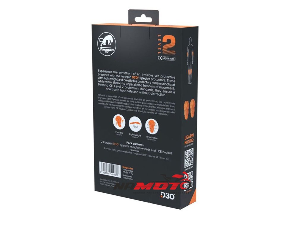 Chrániče Furigan Spectre D3O® L2 sú najnovším pokrokom v ochrannej technológii, vyvinuté exkluzívne spoločnosťami Furygan MotionLAB a D3O®. Každý chránič je predtvarovaný a vysoko flexibilný, čo zaisťuje výnimočné pohodlie, slobodu pohybu a bezpečné nosenie.