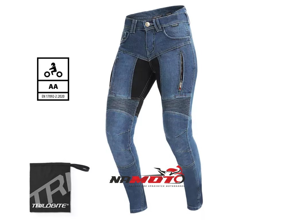Dámske Kevlarové rifle na moto Trilobite Parado 661 modré skinny fit level 2