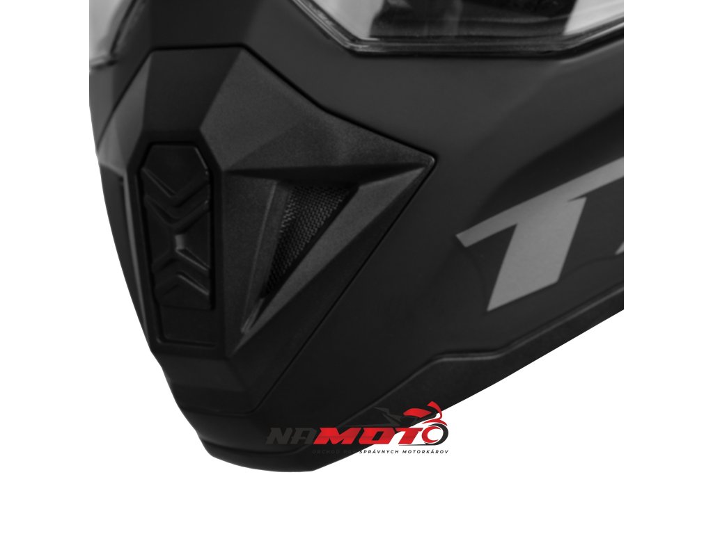 Táto motocyklová prilba je vyrobená z polykarbonátu, ktorý zaisťuje vysokú odolnosť proti nárazom aj prerazeniu.
