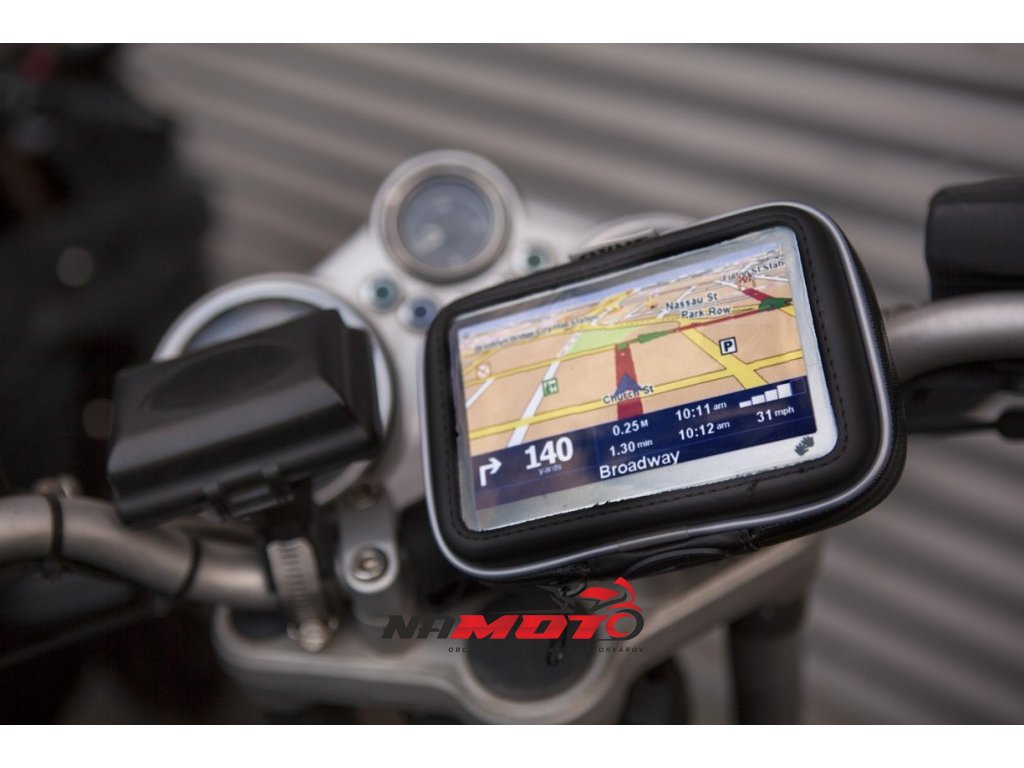 Vaše GPS se schová do robusního, praktického pouzdra, jehož vnitřek je lemován materiálem, který ochrání vaše zařízení. V závislosti na verzi je možné držák upevnit buď na řídítka nebo na zpětné zrcátko, a to vše velmi rychle a jednoduše. Vzhledem k tomu, že je možné držák otočit až o 360 °, můžete si nastavit GPS tak, jak je to pro vás nejpohodlnější. Vodotěsné pouzdro umožňuje použití v jakémkoliv počasí a dotykový displej je plně funkční přes dotykový kryt.