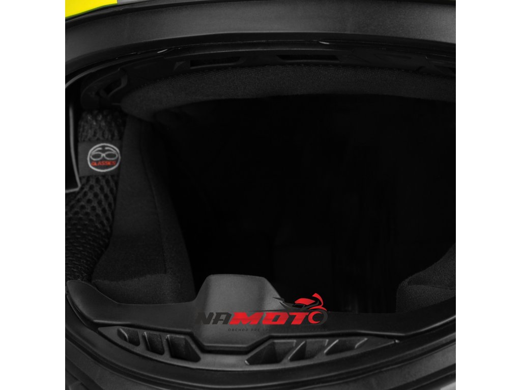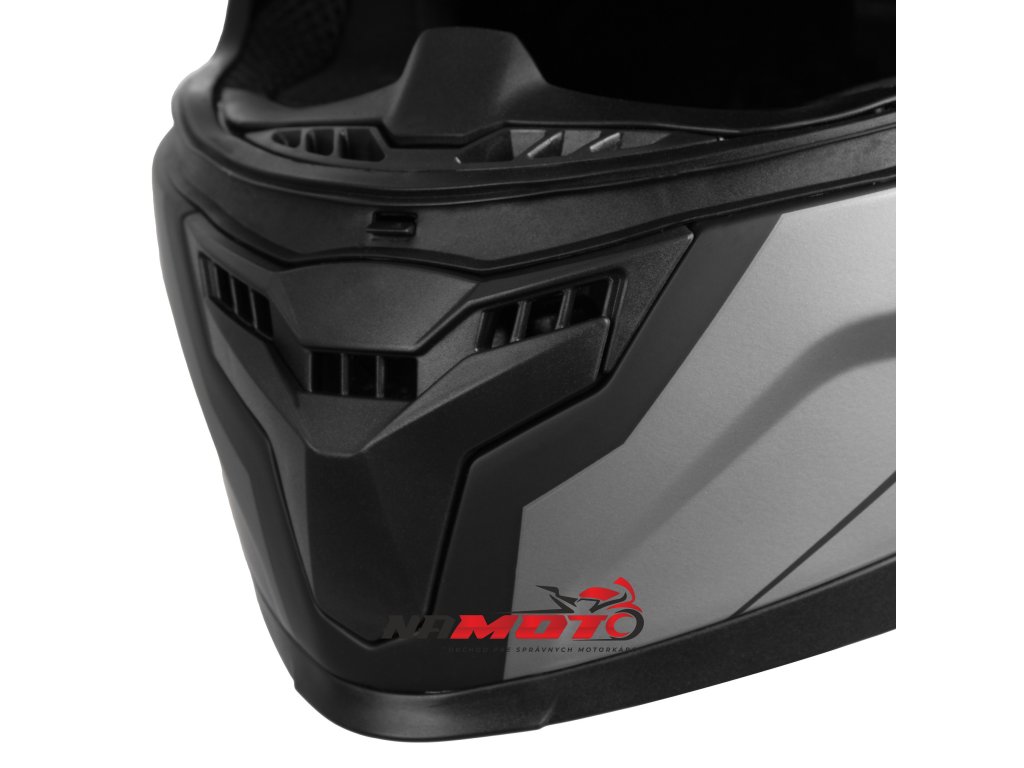 - Prepracovaný ventilačný systém – brada, horná a zadná časť prilby