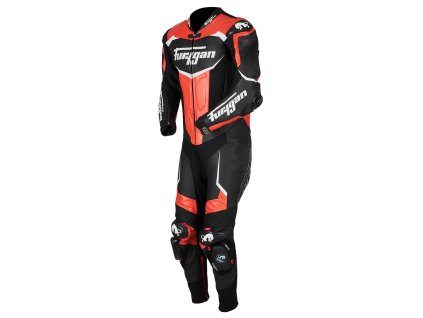 Kombinéza na moto Furygan OVERTAKE kožená jednodielna perforovaná čierna/červená/biela