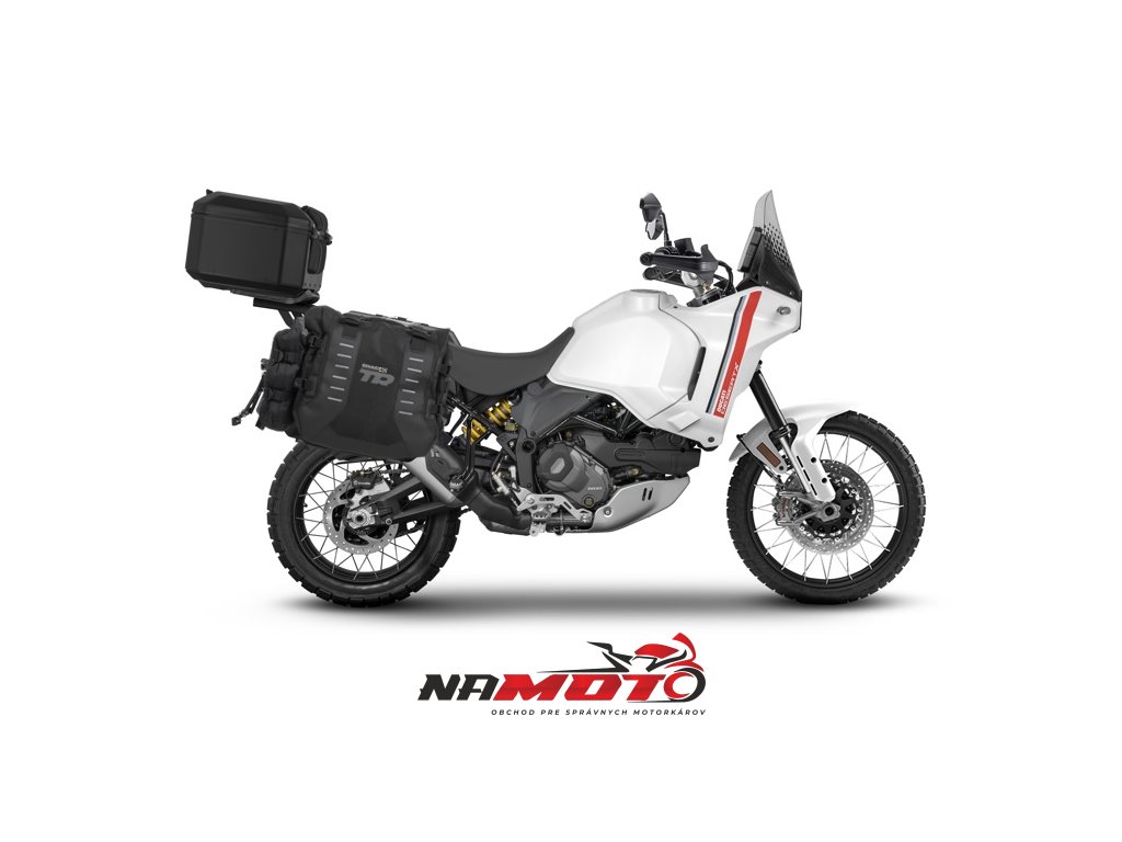Kompletná sada bočných adventure vakov SHAD TERRA TR40 a hliníkového 55 L vrchného kufru ,vrátane montážnej sady SHAD DUCATI DESERT X