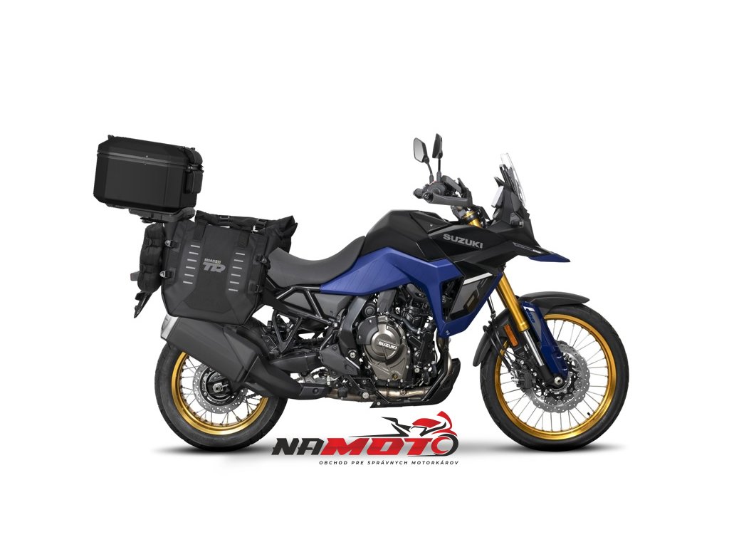 Kompletná sada bočných adventure vakov SHAD TERRA TR40 a hliníkového 55 L vrchného kufru ,vrátane montážnej sady SHAD SUZUKI V-STROM 800 DE