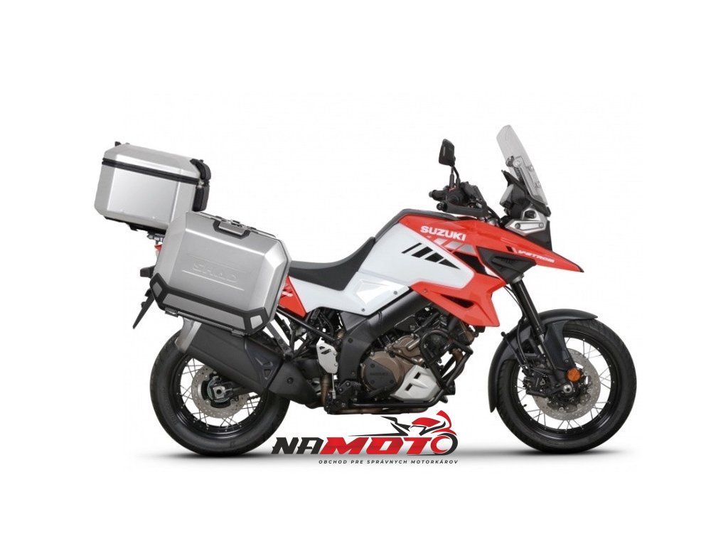 Kompletná sada hliníkových kufrov SHAD TERRA, 37 litrový vrchný kufor, 36/36 litrový bočné kufre, vrátane montážnej sady a platni SHAD SUZUKI DL 1000 V-Strom/ DL 1050 V-Strom
