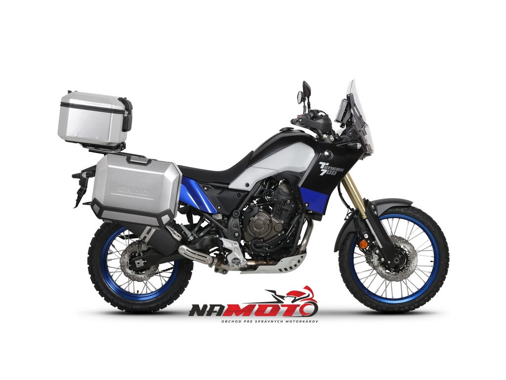 Kompletná sada hliníkových kufrov SHAD TERRA, 37 litrový vrchný kufor, 36/47 litrový bočné kufre, vrátane montážnej sady a platni SHAD YAMAHA Tenere 700 XTZ690
