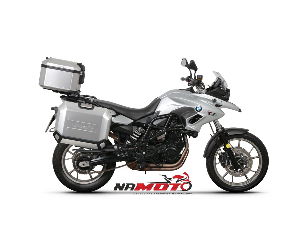 Kompletná sada hliníkových kufrov SHAD TERRA, 48 litrový vrchný kufor, 36/47 litrový bočné kufre, vrátane montážnej sady a platni SHAD BMW F 650 GS/ F 700 GS/ F 800 GS