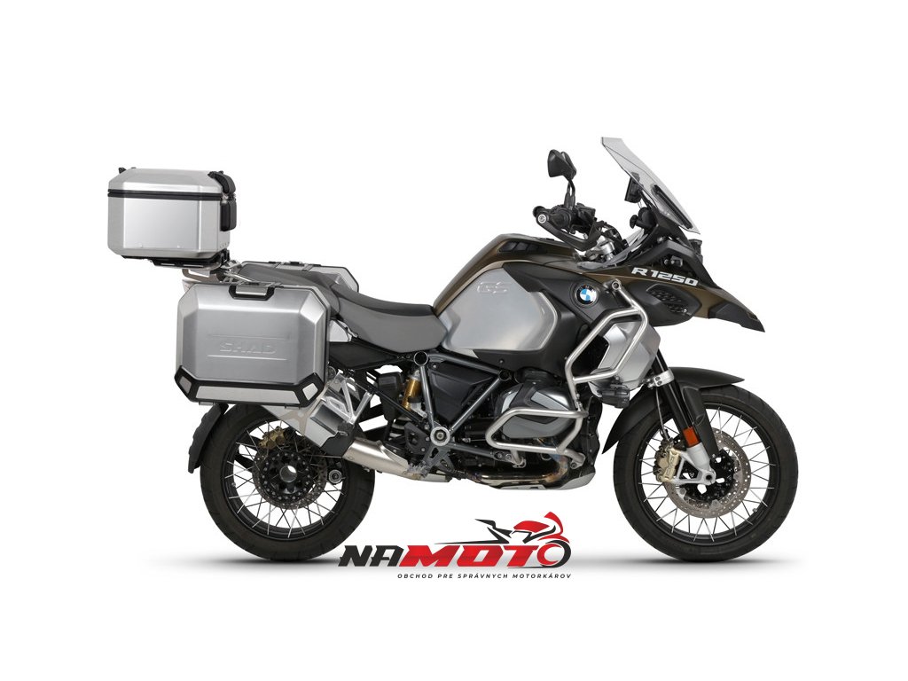 Kompletná sada hliníkových kufrov SHAD TERRA, 48 litrový vrchný kufor, 36/47 litrový bočné kufre, vrátane montážnej sady a platni SHAD R 1200 GS Adventure/ R 1250 GS Adventure