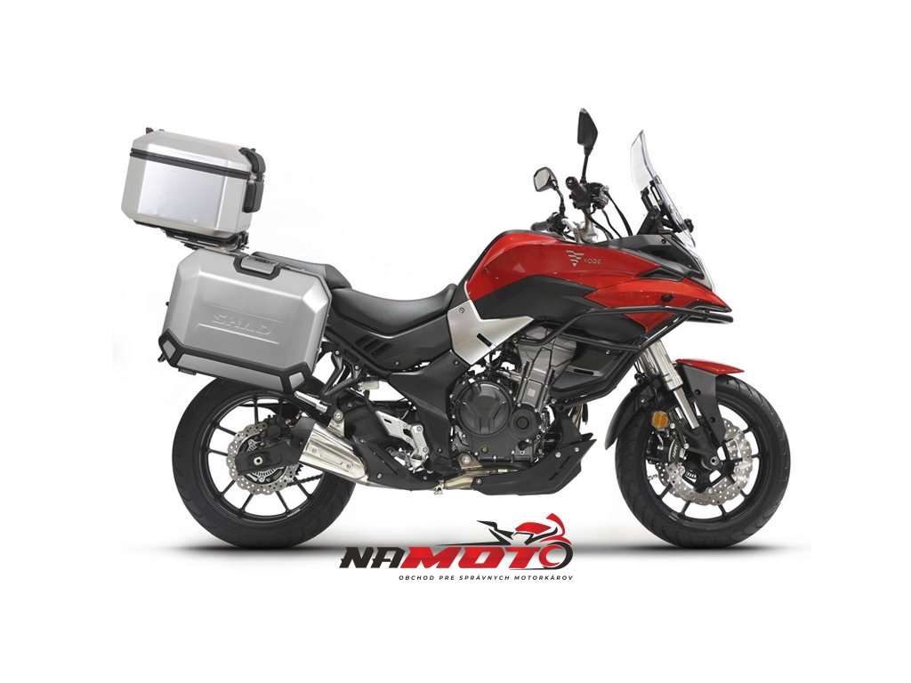 Kompletná sada hliníkových kufrov SHAD TERRA, 48 litrový vrchný kufor, 36/47 litrový bočné kufre, vrátane montážnej sady a platni SHAD Voge 500DS / 500DSX