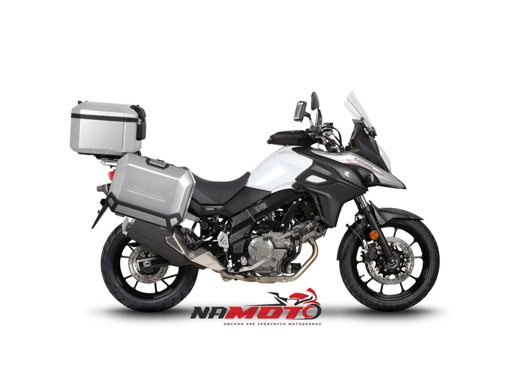 Kompletná sada hliníkových kufrov SHAD TERRA, 48 litrový vrchný kufor, 47/47 litrový bočné kufre, vrátane montážnej sady a platni SHAD SUZUKI DL 650 V-Strom