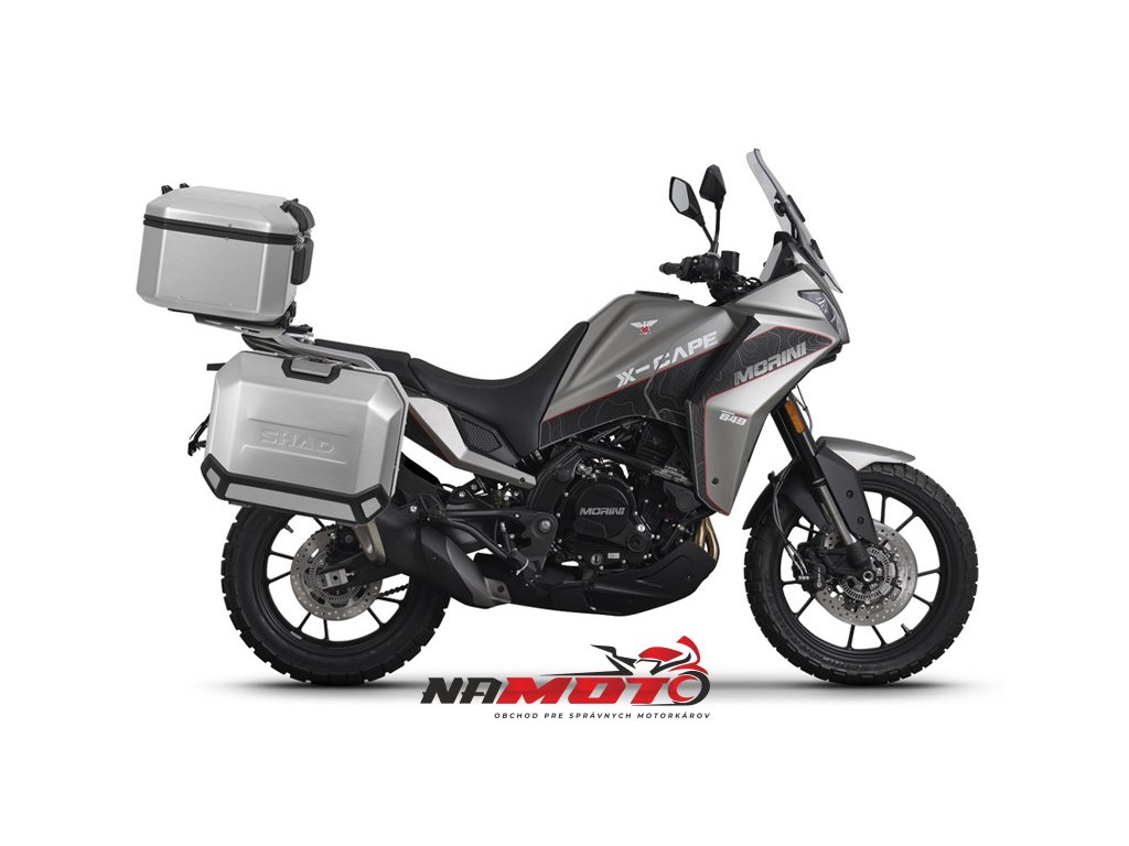 Kompletná sada hliníkových kufrov SHAD TERRA, 55L horný kufor + 47L / 47L bočné kufre, vrátane montážnej sady a dosky SHAD Moto Morini X-Cape 649