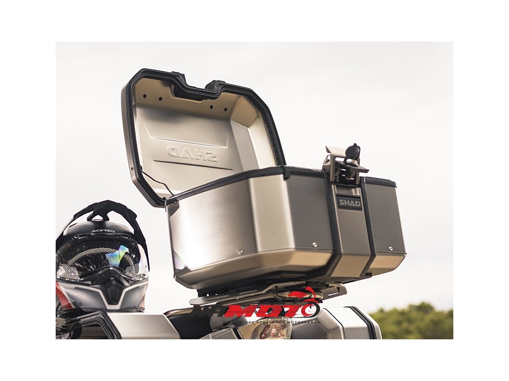 Kompletná sada hliníkových kufrov SHAD TERRA, 55L topcase + 36L / 36L bočné kufre, vrátane montážnej sady a dosky SHAD Moto Morini X-Cape 649