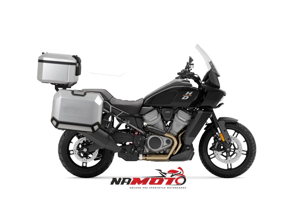 Kompletná sada hliníkových kufrov SHAD TERRA, 55L vrchný kufor + 36L / 47L bočné kufre, vrátane montážnej sady a dosky SHAD Harley Davidson Pan America 1250