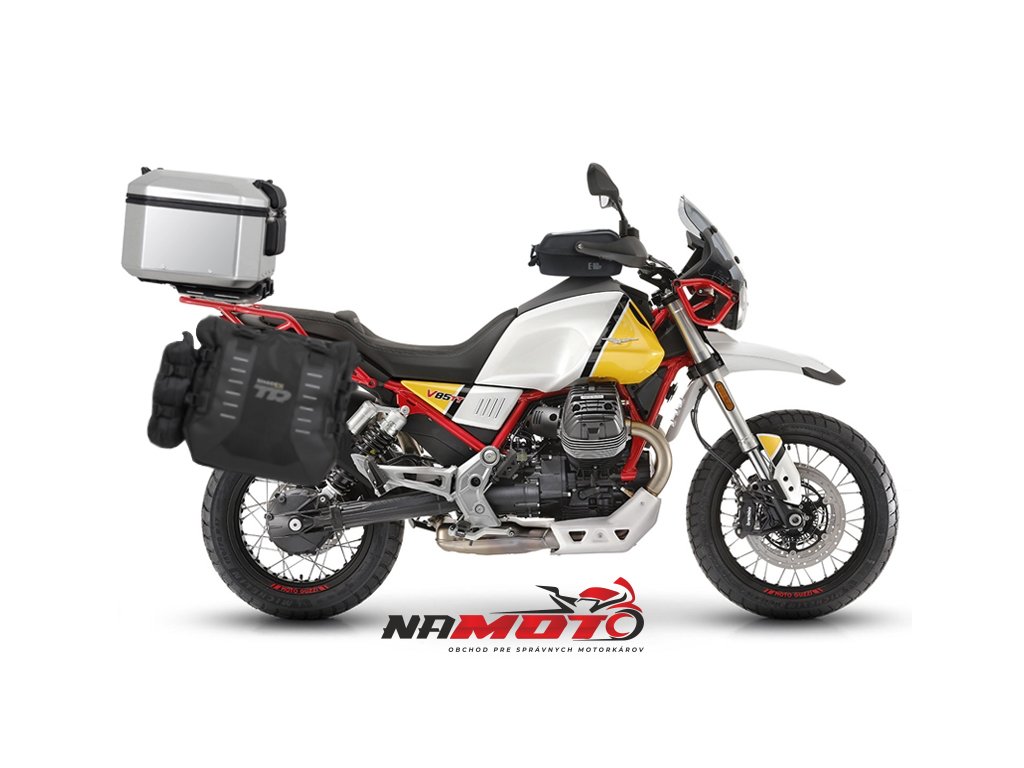 Kompletná sada sedlových brašní SHAD TERRA TR40 adventure a hliníkového kufra SHAD TERRA 37L vrátane montážnej sady SHAD MOTO GUZZI V 85 TT