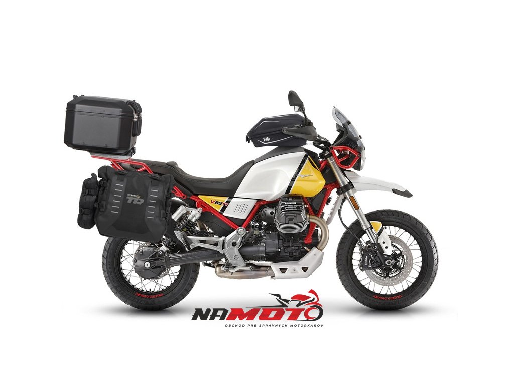 Kompletná sada sedlových brašní SHAD TERRA TR40 adventure a hliníkového kufra SHAD TERRA BLACK 55L, vrátane montážnej sady SHAD MOTO GUZZI V 85 TT