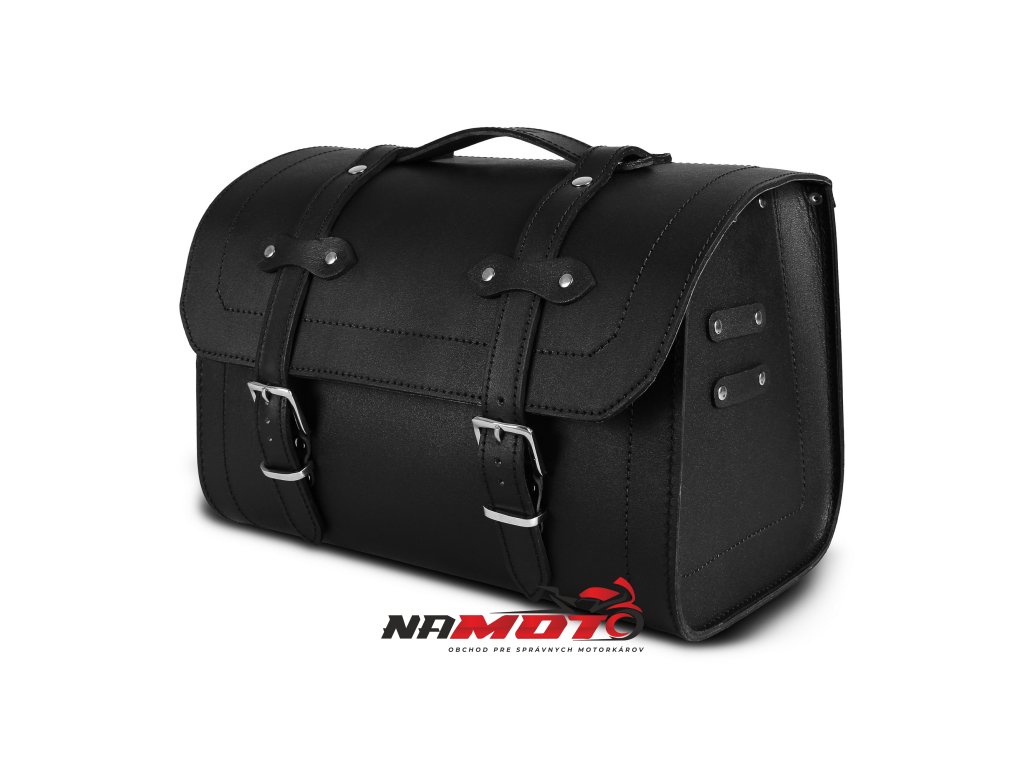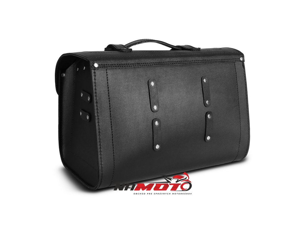 Kufor na motorku vyrobený z umelej hovädzej kože, hr. 2,8 - 3,2 mm opatrená vodoodpudivým povlakom.