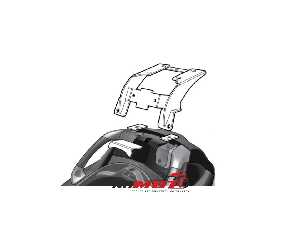 K upevnění vrchního kufru SHAD na motorku stačí namontovat tuto montážní sadu, plotna je vždy součástí kufru (kromě kufrů TR48/TR37).