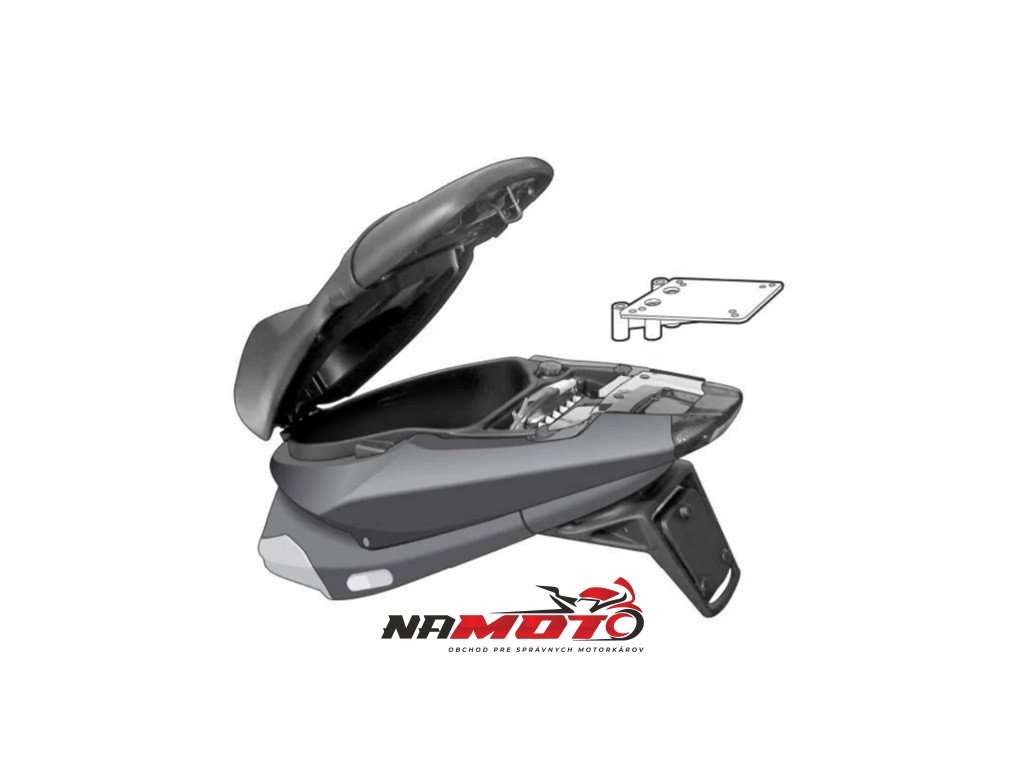 K upevnění vrchního kufru SHAD na motorku stačí namontovat tuto montážní sadu, plotna je vždy součástí kufru (kromě kufrů TR48/TR37).