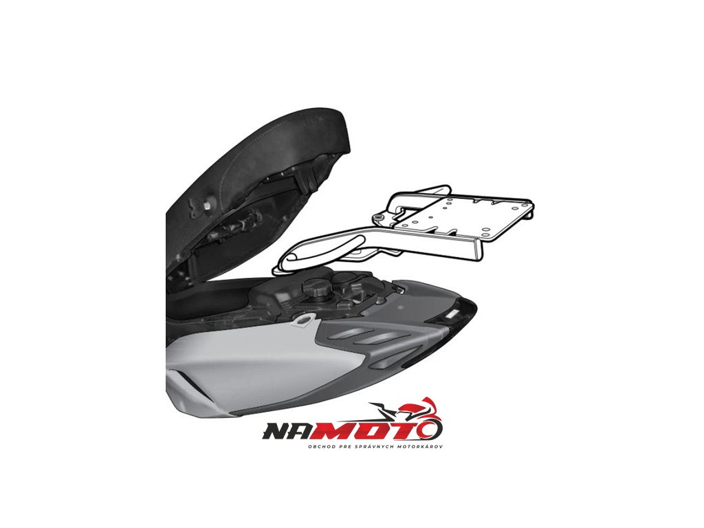 K upevnění vrchního kufru SHAD na motorku stačí namontovat tuto montážní sadu, plotna je vždy součástí kufru (kromě kufrů TR48/TR37).