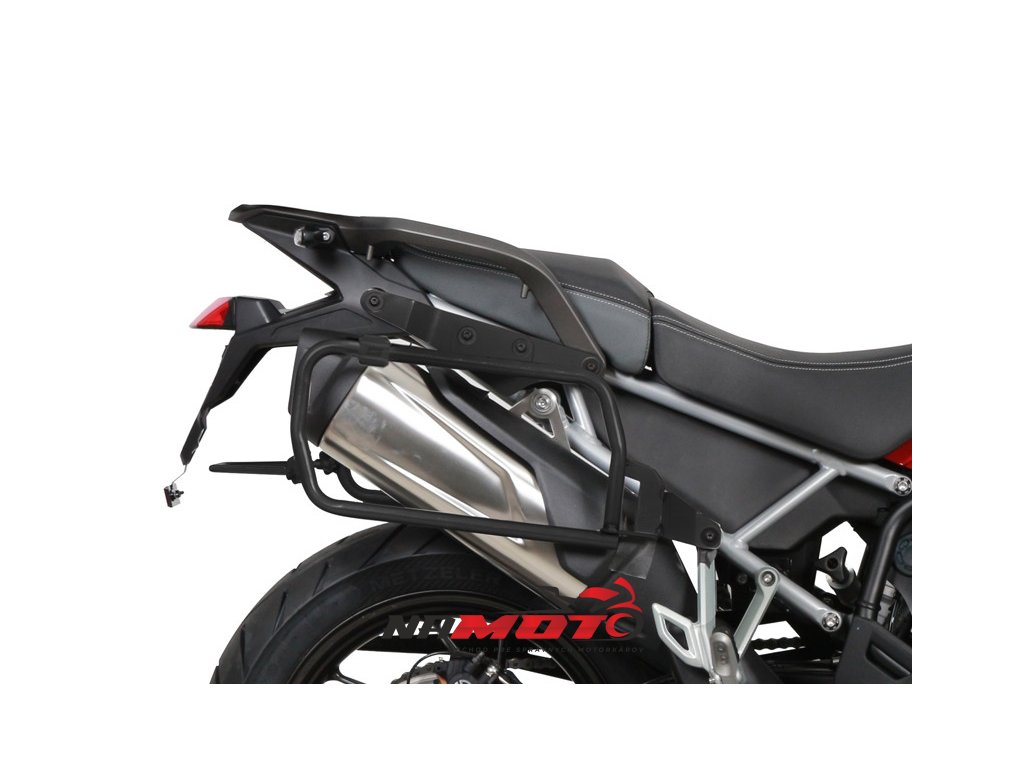 4P SYSTEM 4P montážní sady jsou navrženy a vyrobeny 100% v Barceloně a slouží k připevnění bočních kufrů TERRA. Jsou také kompatibilní s bočními kufry SH35 a SH36. Jedná se o ocelovou konstrukci pokrytou vysoce odolnou práškovou barvou. Díky průměru 20 mm se jedná o nejsilnější konstrukci na trhu, která poskytuje maximální pevnost a odolnost. Tato montážní sada je navíc ještě vyztužená prostřední příčkou pro ty nejextrémnější jízdy.