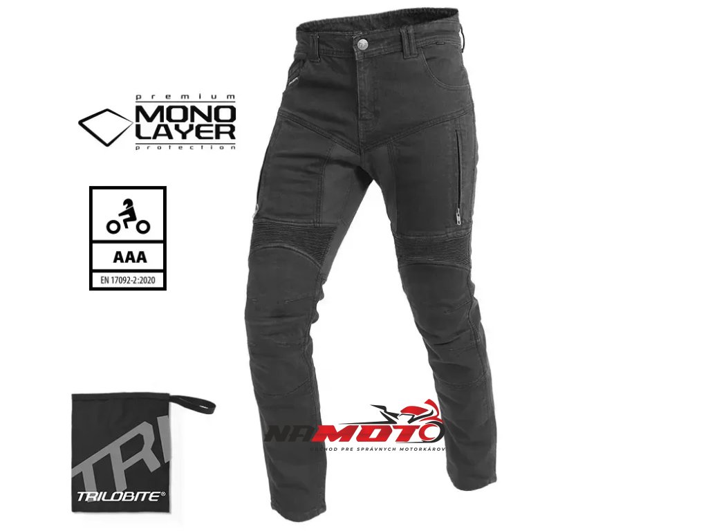 Sú ľahké, priedušné a majú veľké ventilačné vrecká. Vďaka tomu sa hodí na prechádzky v teplých letných dňoch. Nenájdete na nich samostatnú aramidovú vrstvu, ako u ich dvojvrstvových kolegov. V tomto prípade je aramid spolu s inými syntetickými polymérnymi vláknami priamo súčasťou úpletu. Táto technologická novinka TRI-STRETCHER® 5.0 džínsového vzhľadu má jedinečný dizajn a konštrukciu vyvinutú v dielni TRILOBITE®. Zaručí vám najväčšiu dostupnú úroveň pohodlia a bezpečnosti. Vďaka novo vyvinutej látke TRI-STRETCHER® 5.0, ktorý v jednej vrstve ponúka doposiaľ najvyššiu možnú ochranu pre prípad pádu a oderuvzdornosti si môžete užiť zážitok z jazdy na motorke bez kompromisu. Ešte donedávna bolo možné dosiahnuť najvyšší stupeň AAA certifikácie iba u kožených kombinéz, ktoré sú pre mestskú jazdu značne nepohodlné. Dnes je to ale inak. Ukážeme vám, že to ide lepšie.