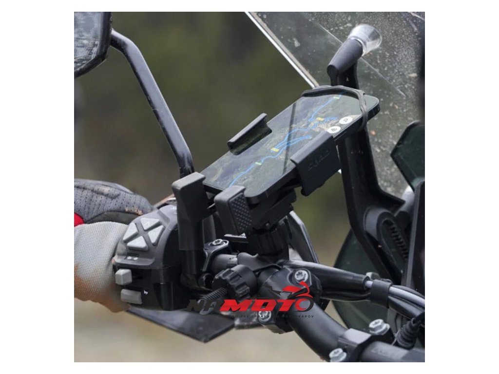 Držák je dostupný ve dvou variantách - s objímkou na řidítka (X0SG00H), nebo s úchytem pod zrcátko (X0SG00M). V případě varianty s uchycením pod zrcátko, jsou součástí balení dva adaptéry na matici M8 a M10, podle vašeho motocyklu.