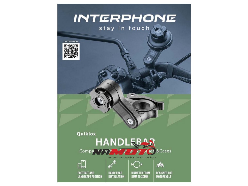Rýchloupínací držiak Interphone Quiklox s úchytom na riadidlá, čierny