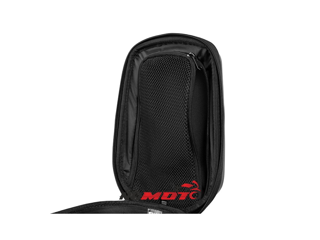 Brašna na nádrž E09C Click System je vybavena mnoha funkcemi, včetně zipů vhodných pro rukavice, pevné konstrukce, síťovaných kapes a tvaru přizpůsobeného jezdci.