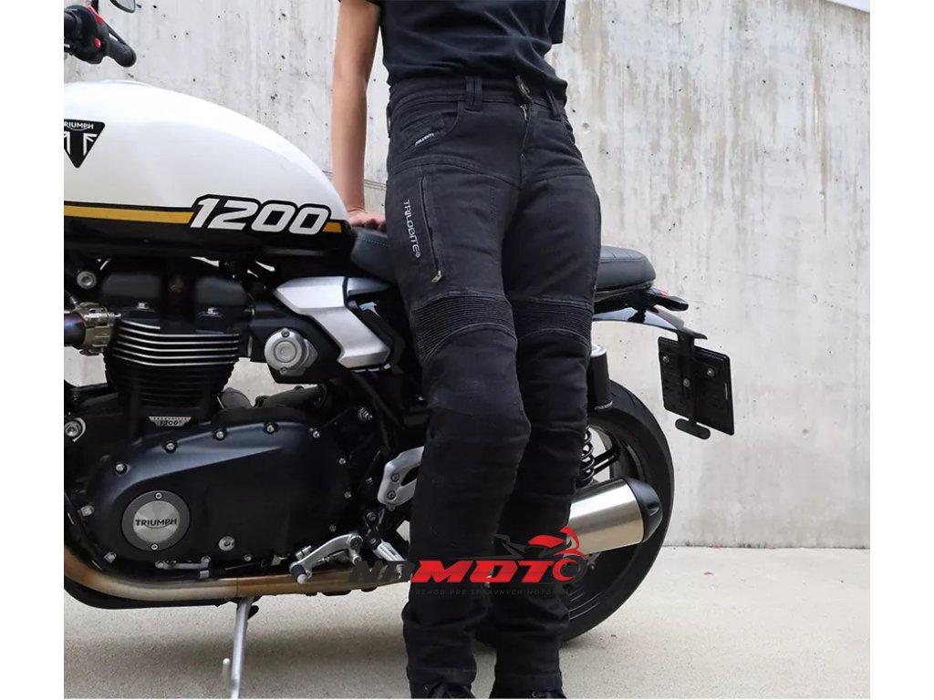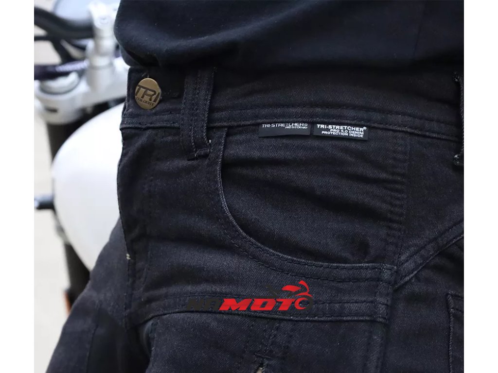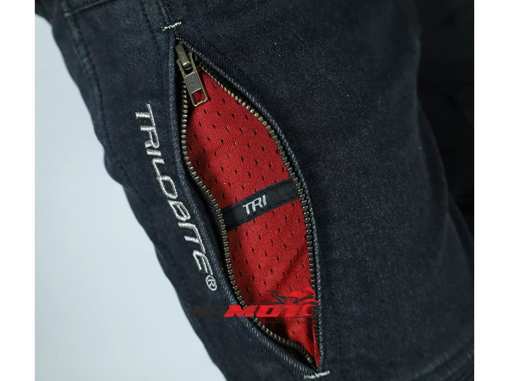 Základnou myšlienkou bolo vyvinúť tkaninu, ktorá bude vynikať pohodlím, bezpečnosťou a zároveň splní náročné požiadavky na strih, opotrebenie, roztrhnutie, oderuvzdornosť a chemickú odolnosť finálneho výrobku pri CE Certifikačných testoch. Tri-Stretcher® PRO 5.0 Denim je špeciálnou zmesou Bavlny, Elastanu a Polyesteru patentovaná spoločnosťou Bikers Crown s.r.o., ktorá je výhradným vlastníkom materiálu a zároveň dizajnérom motocyklových džínsov Trilobite. Vďaka nedávnym prelomom v oblasti syntetických vlákien môžu byť džínsy pre jazdu na motocykli ľahšie ako kedykoľvek predtým. Nová generácia syntetických a polyetylénových vlákien umožňuje zmiešať Polyester, Nylon, Elastan a ďalšie priadze, napríklad aj prírodné, do úplne novej, sofistikovanej tkaniny na výrobu motocyklových džínsov Trilobite. Tri-Stretcher® PRO 5.0 Denim je moderná technická tkanina, ktorá je budúcnosťou jazdy na motocykli. Vyrába sa zo zmesi materiálov z rodiny polyamidov ako je Nylon a aromatických polyamidov, ako je Aramid alebo polyuretánové vlákna vyrobené z Elastanu, a zároveň zahŕňa prírodnú bavlnenú tkaninu. Táto látka je jedinečná svojou úžasnou pevnosťou a zároveň nízkou hmotnosťou. Tri-Stretcher® PRO 5.0 Denim je jeden „šikovný tím“ rôznych vlákien spletených dohromady, ktoré vás v prípade nehody ochránia rovnakým spôsobom ako celokožená kombinéza, ale bez kompromisu na pohodlie. Tieto džínsy sú vyrobené z dvoch vrstiev najodolnejšieho materiálu Tri-Stretcher 5.0 Denim. Jedna vrstva tohto materiálu spĺňa CE certifikačné požiadavky levelu AAA. Preto spojením dvoch vrstiev tejto látky vznikli zatiaľ najbezpečnejšie džínsy na svete.