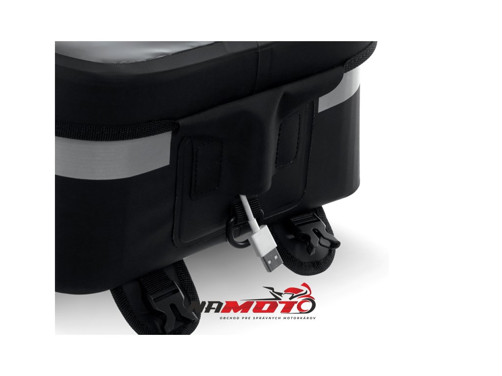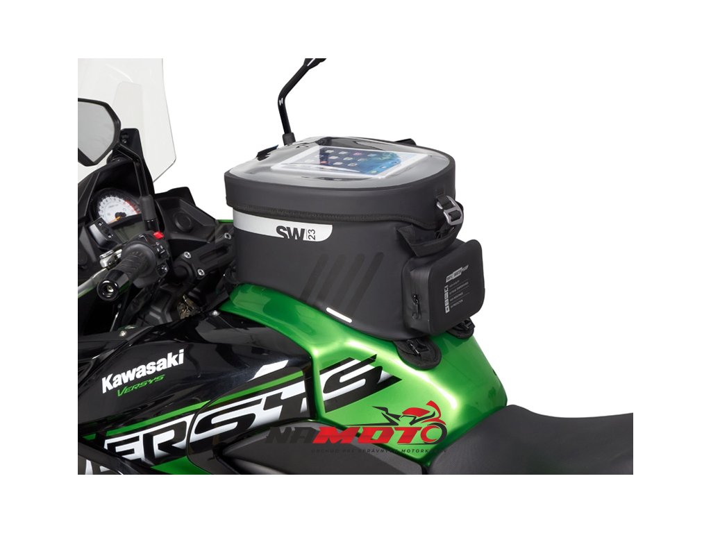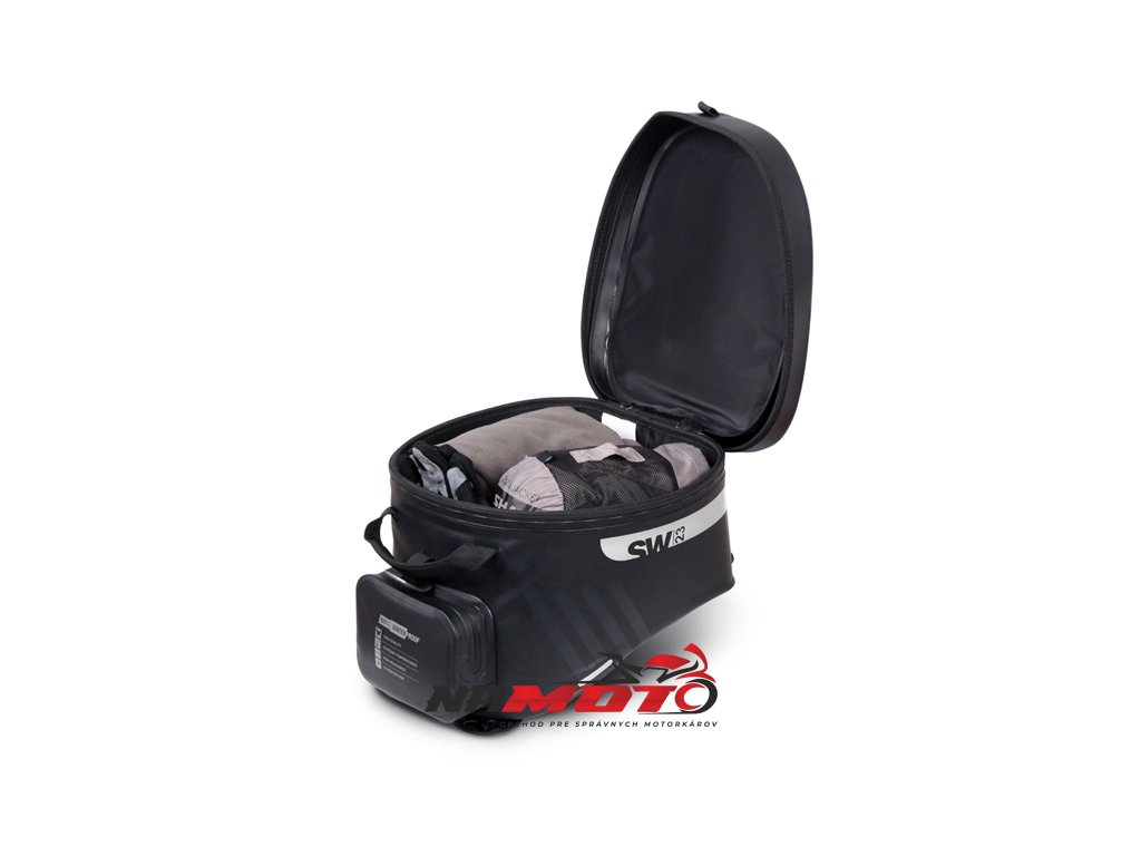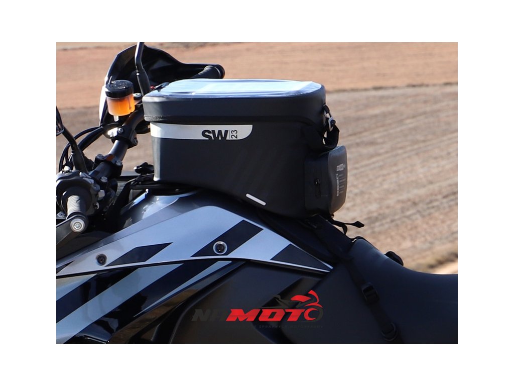 Vodotěsný vak na nádrž SW23B o objemu 14 litrů s univerzálním popruhovým systémem pro instalaci na plastové nebo kovové nádrže. Volitelný 4-bodový magnetický systém pro kovové nádrže (Ref. X1SL11). Klopě, která zcela zakrývá voděodolné zipy, je hlavní komora plně vodotěsná a ochrání všechny cennosti.