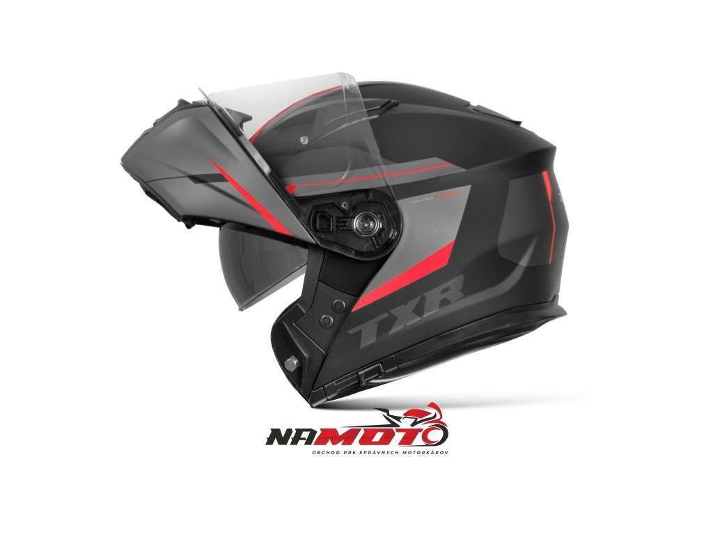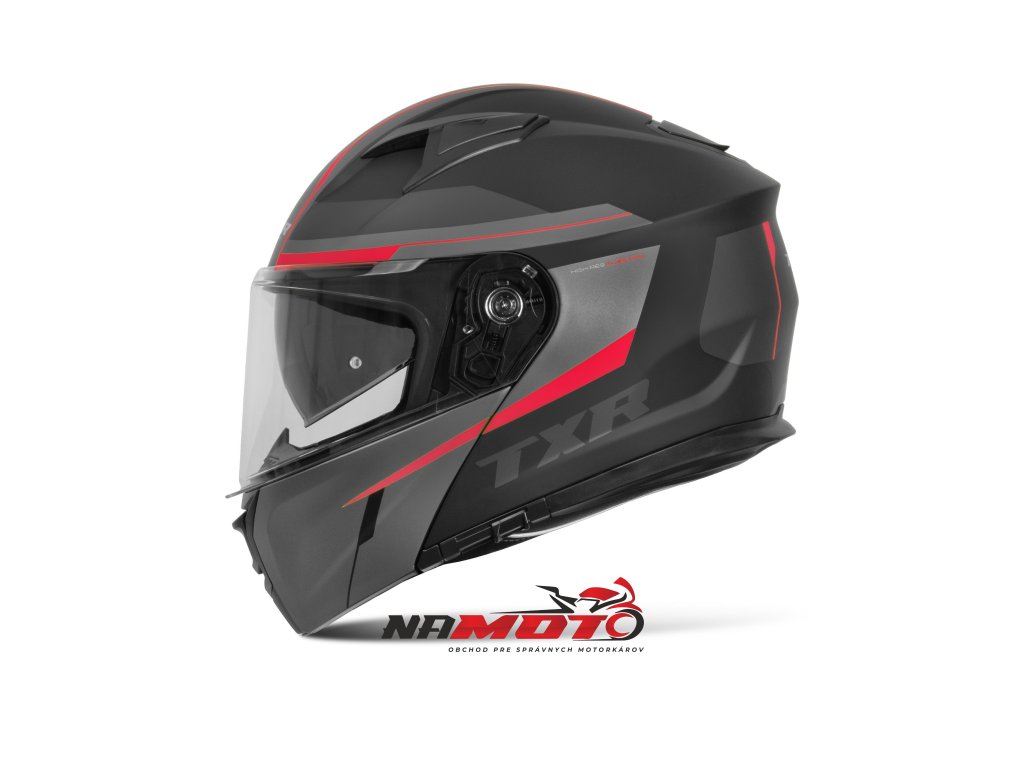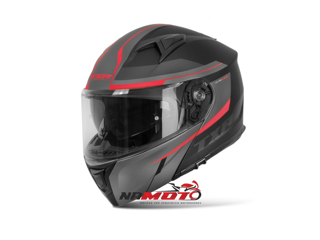 Výklopná prilba na motorku TXR Rival čierno-šedo-červená