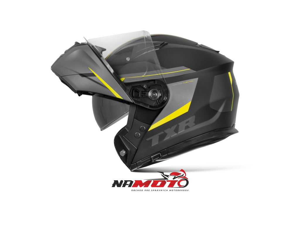 Výklopná prilba na motorku TXR Rival čierno-šedo-fluo žltá